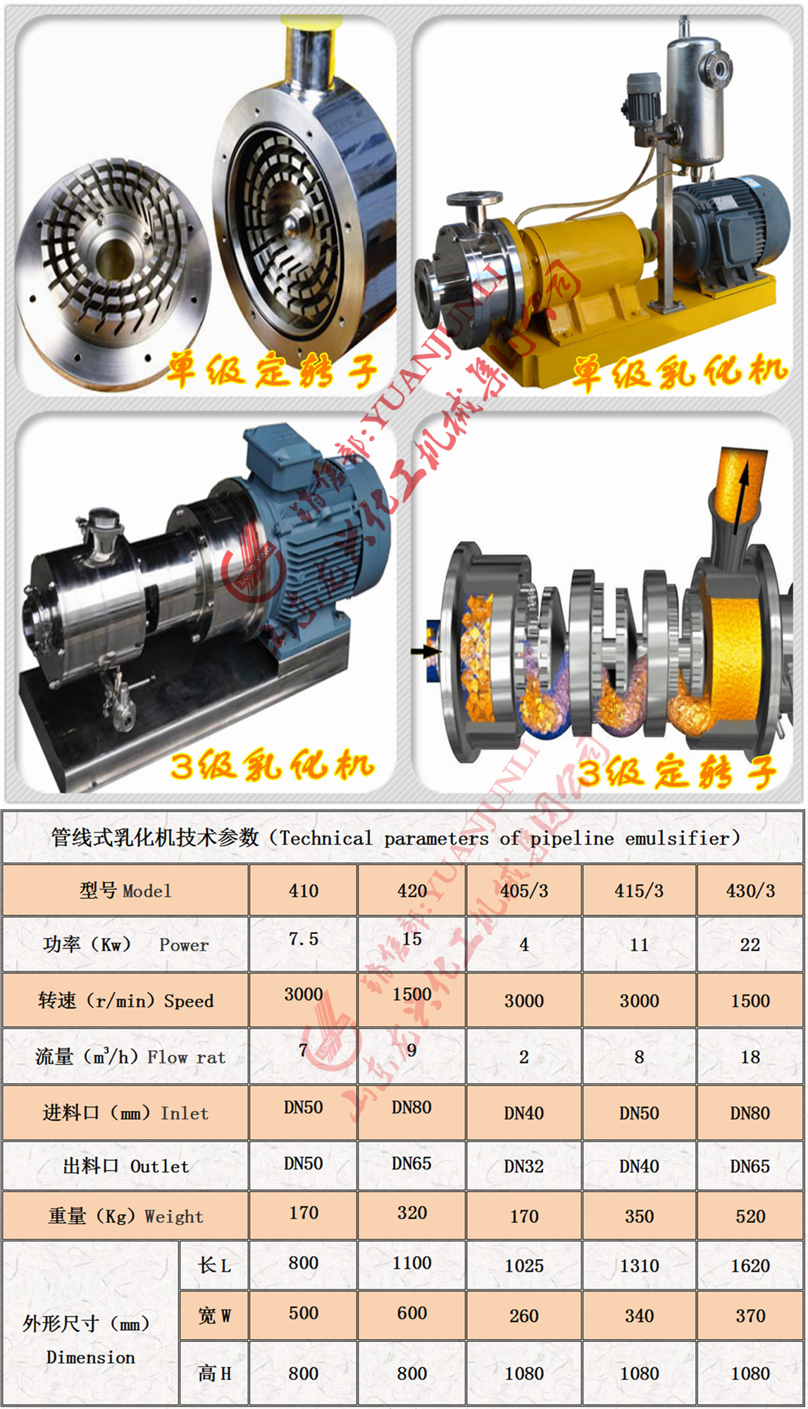 山東萊州管線式乳化機根據應用工況可分為單級管線式乳化機三級管線式乳化機,選精品管線式乳化機請認購龍騰牌系列管線式乳化機廠商直供產品,龍興集團為您供415--430型系列管線式乳化機