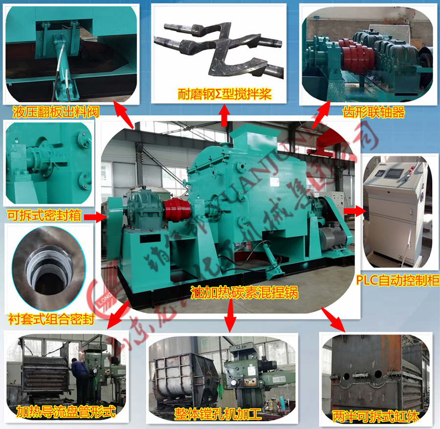 (1)碳素捏合機(混捏鍋)的內攪拌腔內加附16Mn板,可拆卸更換,方便客戶使用;